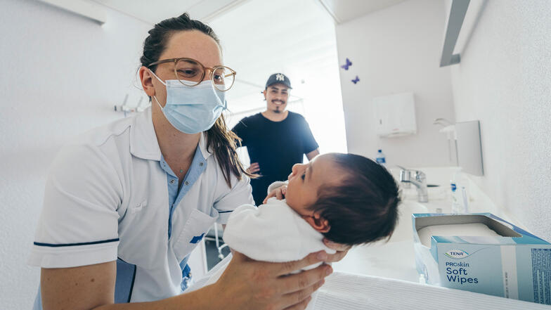 Papa est en admiration, le personnel soignant tout autant ! © Jo Bersier